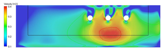 As Table 3 shows, the average velocity in the wall zone was dependent upon the number of rows as the cases with only one row of nozzles (Cases 1 and 4) had the highest velocities in this zone. However, the average velocities in the manikin and symmetry zones were independent of the inlet velocity as well as the airflow rate and supply temperature.