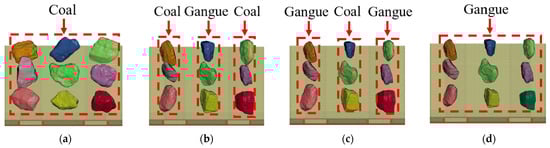 Four different RMR of coal gangue particles. (a) 0% (b) 33% (c) 66% (d) 100%.