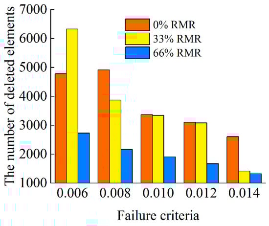 Relationship between failure criteria and number of deleted elements under different RMR.