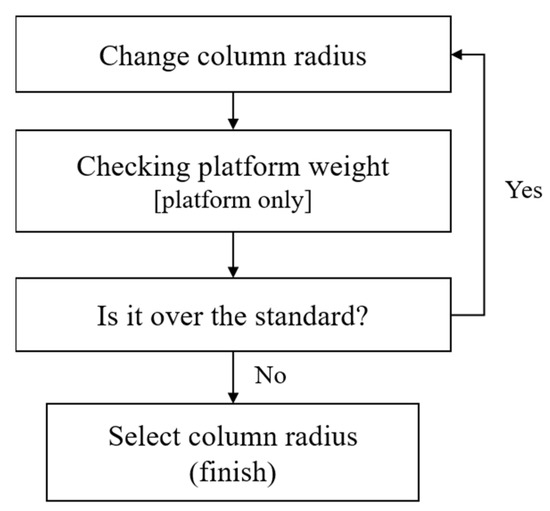 The column radius was selected based on the reference range of the amount of material compared with the reference platform design. The platform design presented in this paper was determined by selecting the radius of the column according to the procedure shown in Figure 9.