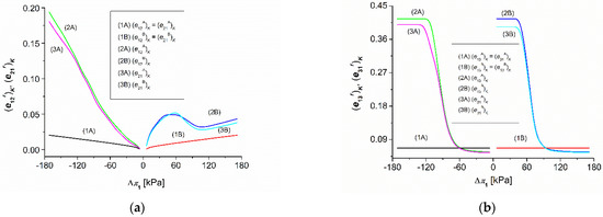 3.1. Osmotic and Hydrostatic Pressure Dependencies of , and and