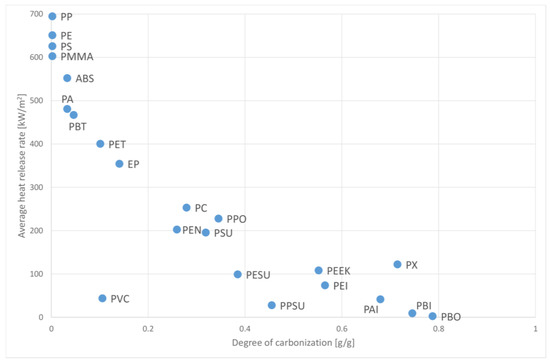 17] provide the heat-release rate (HRR) parameters and the degree of carbonization of PURs—most likely due to the broad interpretation of the “PUR” definition. For these substances, the only common feature is that they contain an urethane group, while the proportions and chemical composition—including, e.g., the type and content of flame retardants—vary in a significant way, depending on the application and structure of hard and soft foams, sponges, etc. For this reason, it is impossible for them to be allocated a common definitive value. Such a value can only be provided for a specific product or a more specific group of products.