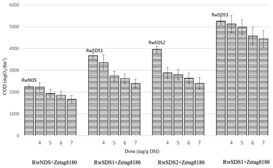 - The concentration of COD in the reject water increased with the increase of the amplitude of the sonication wave. The use of chemical agents for sludge conditioning reduced the COD value in the reject water. The COD concentration decreased with the increase of the chemical dose. The best COD reduction effect (to 280 mgO2/dm3) was observed for reject water obtained from non-sonicated sludge prepared with PIX 113 coagulant at a dose of 7.0 mg/g DM.