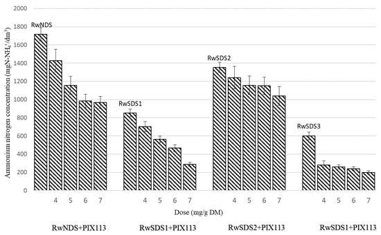- The concentration of ammonium nitrogen in the reject water decreased with the increase of the amplitude of the ultrasonic field applied for the physical conditioning of the sludge. The addition of chemical agents to the sludge resulted in the further reduction in the concentration of ammonium nitrogen in the reject water. The lowest concentration of ammonium nitrogen (200 mg N-NH4+/dm3) was observed in the reject water obtained after the filtration of the sonicated sludge prepared with the addition of PIX 113 (at a dose of 7.0 mg/g DM).