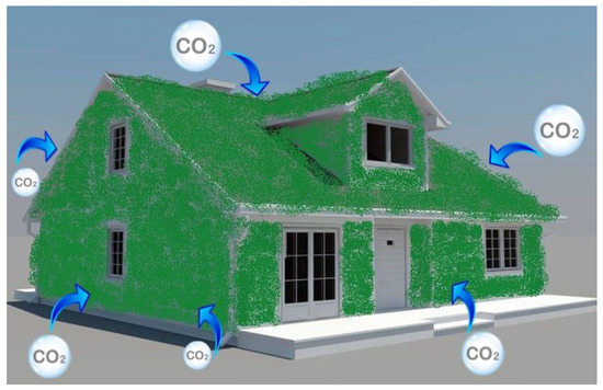 Thus, the proposed idea constitutes one of the applicable technologies allowing to slow down dangerous global warming via dropping global carbon dioxide emissions to zero. Furthermore, it also integrates the efforts of the world population especially from the emerging economies struggling to fulfil their energy needs from fossil fuel-based energy systems with the governments, industrial and scientific communities working on lowering the CO2 levels in the atmosphere, limiting the global atmospheric temperature rise to 1.5 degrees and fulfilling the global net-zero emissions targets. Therefore, the lowering of the greenhouse gas concentration by covering the walls and roofs of the houses can contribute to the environmental sustainability for future generations, especially in the emerging economies which are struggling with the higher CO2 emissions levels and the deployment of costly carbon capture technologies could be a challenge for the governments for decarbonizing the industrial sectors.
