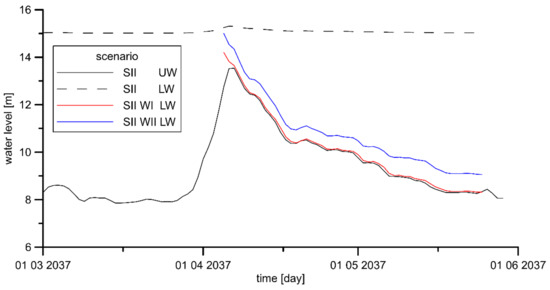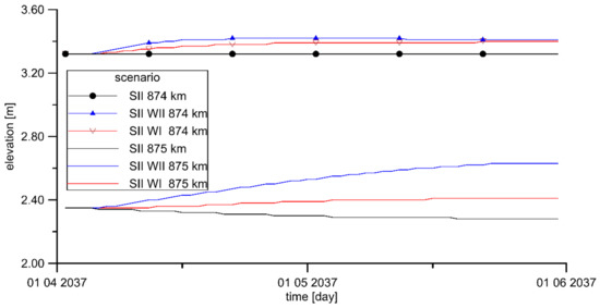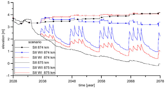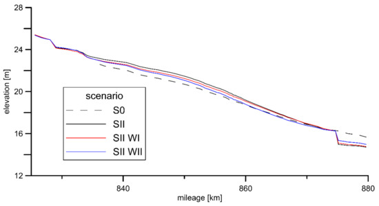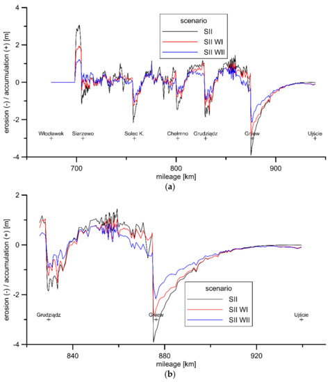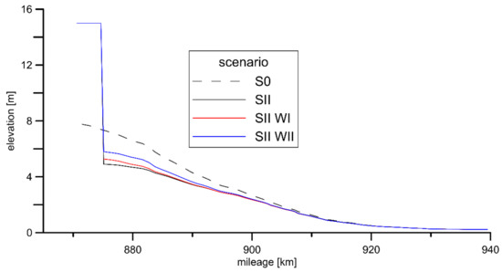 3.2. Impact of the Lower Vistula Cascade on Bathymetry Changes in the SII Scenario