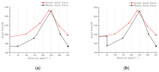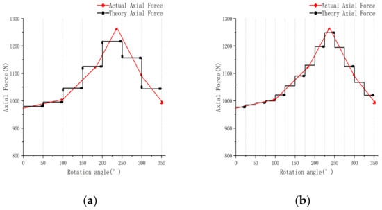 Next, for the first interval 0–(m = 2𝜌/N), the corresponding axial forces are all set to the value at the 0° of the theoretical axial gas force curve, as shown in Figure 5a.