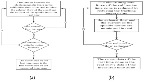Segmented tracking process diagram: (a) flow chart of increasing electromagnetic force; (b) flow chart of reducing electromagnetic force.