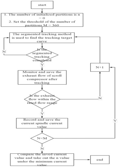 The main principle of the control method is that the value of the probe tracking partition number n is continuously optimized iteratively in the set threshold m (360), and the exhaust flow and current of the scroll compressor are used as the evaluation basis. When the exhaust flow of the scroll compressor reaches more than 85%, on this basis, the minimum current is the optimal state, the value of the number of probe tracking zones n that is most suitable for the system can be determined, and the N value can be saved for a direct call in the next tracking. The flow chart of the segmented approximation tracking partition number automatic optimization control method is shown in Figure 12 below.