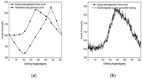 In this paper, the electromagnetic balance mechanism combined with the optimization algorithm is used to automatically and effectively find the axial balance force curve with a good sealing effect. The original curve, such as the black curve in Figure 4, can be obtained through the simplified mathematical model of the scroll compressor.