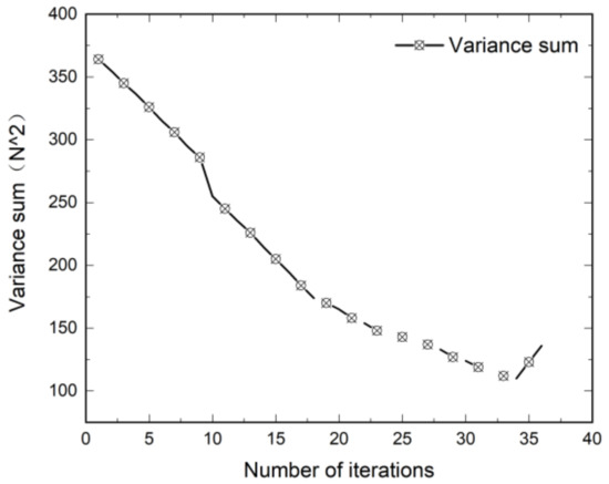 Figure 16 shows the variance in the first interval with the number of times adjusting the calibrated axial force curve during the segmented tracking process. It can be seen from Figure 16 that the standard error first became smaller and then larger. During this process, there was a minimum. This shows that the segmented probe tracking method has convergence.