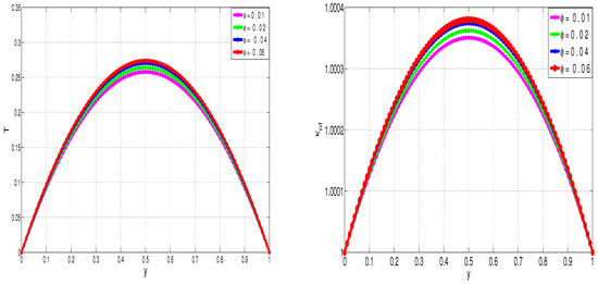 Comparative dependence of nanofluid temperature on Br (left) and (right).