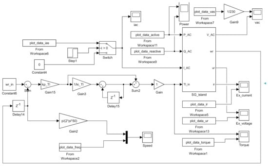 , a simple prime mover PI regulator was used. The output frequency of the model is dependent on the regulator parameters, the electromagnetic torque calculated based on (