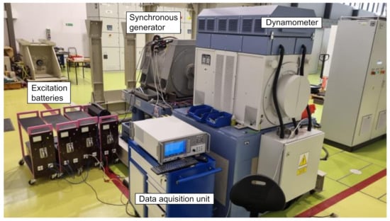 Measurement setup with the dynamometer and the studied synchronous generator.