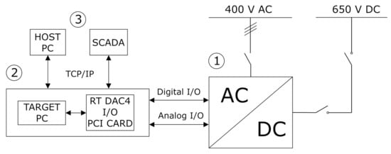 Block diagram of the PHIL system, including: (1) DC/AC bidirectional converter—Functional unit (FU), (2) Functional Unit Controller (FUC) and (3) Communication and control peripherals.