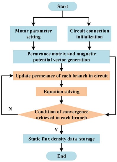 Then, the MEC model is solved by MATLAB following the flow chart shown in Figure 3. The saturation in iron is counted in by the iteration of μr. For each branch in the magnetic circuit at the ith step in an iteration, the condition of convergence ε is defined as,