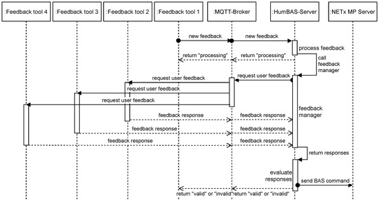 Figure 8, the HumBAS server will create a feedback request for every other available feedback tool. For this, it propagates the necessary information, i.e., the feedback