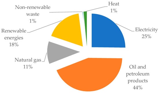 Finally, it is important to have a view of the decarbonization process of the economy from the point of view of final energy consumption. As the carbon intensity decreases in electricity generation, due to the increase in the penetration of renewable sources [81], the electrification of final energy consumption becomes an increasingly announced decarbonization strategy. As an easier approach to the topic, the final energy consumption was divided into three different sectors of activity, typically those with the highest final consumption, buildings, industry, and transport.