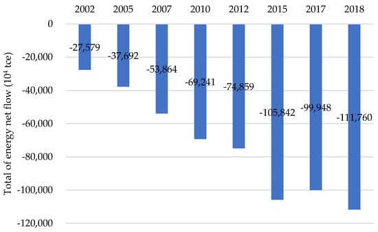 The total of energy net flow of the Chinese construction sector, 2002–2018.