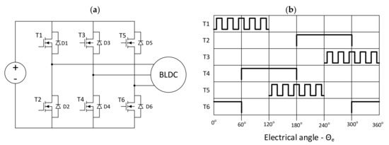 - Ciurys, M.P. Analysis of the influence of inverter PWM speed control methods on the operation of a BLDC motor. Arch. Electr. Eng. 2018, 67, 939–953. [Google Scholar] [CrossRef]