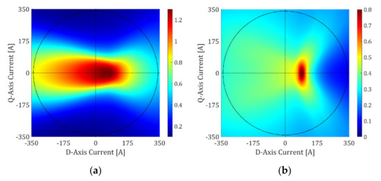 Inductance maps of the electric machine: (a) d-axis (b) q-axis.