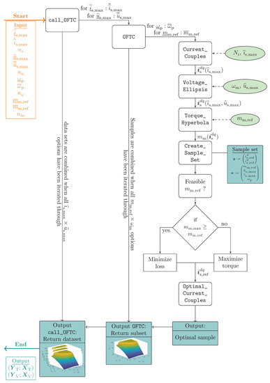 In this paper, a novel ANN-based OFTC is proposed. The OFTC problem has been discussed in numerous publications (see e.g., [10,11,12,13,14,15,16,17,18,19] for MTPC/MTPA, [12,14,18,20,21,22,23,24] for FW, [4,5,12,25] for MC, [4,5,13,26,27,28,29] for MTPL, and [6,14,20,21,22,23] for MTPV). The goal of OFTC is to compute or look up optimal reference currents for each of the aforementioned operation strategies. This is mostly done numerically or in few cases analytically imposing simplifying assumptions such as the neglection of the nonidealities: (a) varying stator resistance, (b) nonlinear magnetic cross-coupling and saturation, (c) physical current and voltage constraints, (d) iron losses and (e) temperature dependencies.
