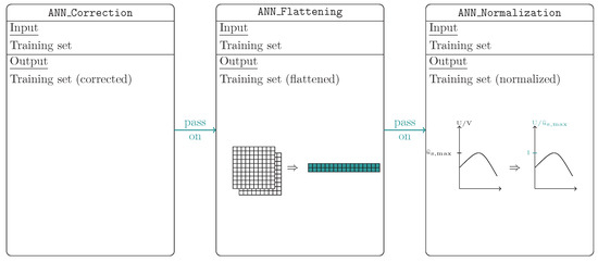 To replace ORCC by an Artificial Neural Network (ANN; ANNs are often also called Multi-Layer Perceptron (MLP) networks, see Section 3.10 in [63]), the ANN must be properly designed such that input, hidden and output layers have adequate size and the used activation functions are simple but powerful enough to be capable of reduplicating the nonlinear machine behavior. After ANN design, it must be trained and validated by properly selected training and validation data sets. The data sets must be created and preprocessed with care such that ANN training and ANN validation are feasible.