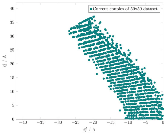 are considered. Clearly, more inputs such as angular position or rotor and stator temperature are feasible and might be of interest but are considered as future work. The output vector comprises the two optimal reference currents, i.e.,
