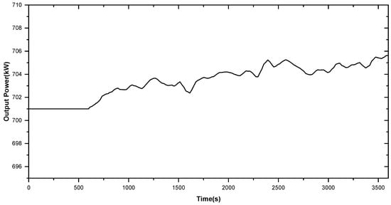 The experiment realized compensations as high as 51 times/hour and effectively compensated the fluctuating wind power curve into a relatively smooth curve. Figure 8 shows the power curve after FESS compensation. Compared with the wind power output by a wind turbine, the wind power compensated by FESS is approximately 703 kW, and the overall power fluctuation range does not exceed 3%. Figure 9 shows a waveform diagram of the flywheel rotor speed. During the compensation process, the flywheel rotor speed was maintained at 3000–6000 rpm.