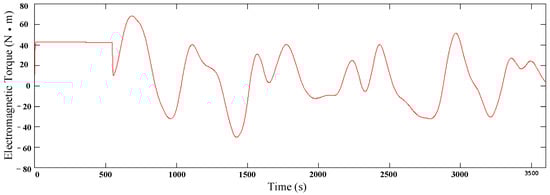 Figure 11 shows the electromagnetic torque waveform of the PMSM. It can be seen from the figure that the general trend of the electromagnetic torque is basically consistent with the wind power curve that needs adjustment.