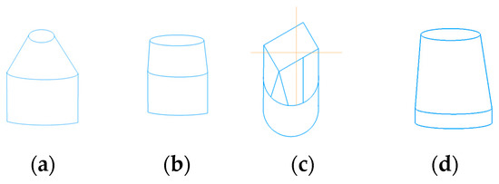 Drill bit inserts [9]: (a) radial bow, (b) crest geometry, (c) conical and rectangular shape, (d) double conical.