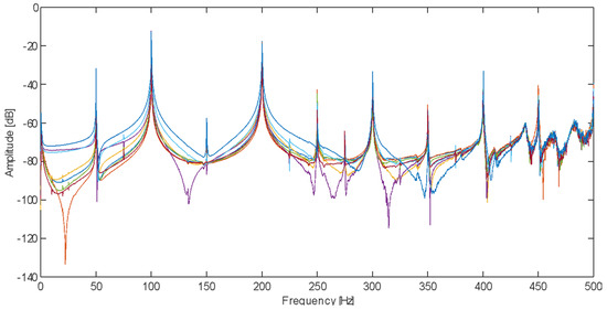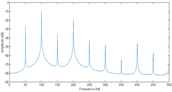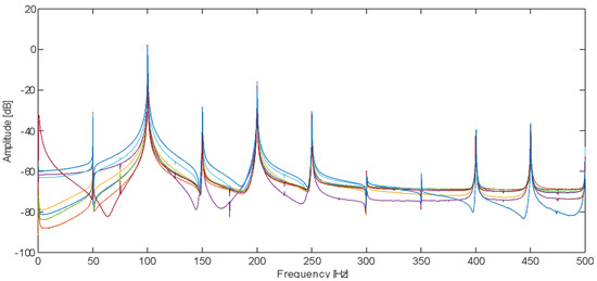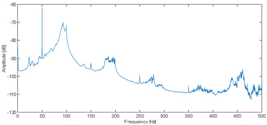 Based on all acquired CPD functions, the SUM indicator is calculated as shown in Figure 7. This indicator shows that the highest amplitude of vibrations is observed in 100 Hz frequency.