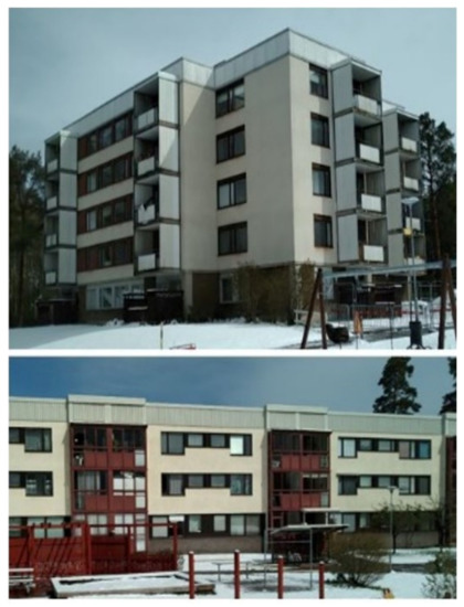 To study large buildings stocks (such as Sweden’s Million Homes Programme buildings), it is common to use categorisation based on physical properties of the building stock [6,7,8]. After categorisation, the building stock is modelled as representative buildings, chosen from each category, or as archetype buildings, based on average properties from each category [9,10,11]. These representative or archetype buildings are then scaled up to the entire building stock at district, city, regional or national level. Renovation of representative buildings can then be used to investigate renovation of building stocks.