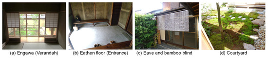 The authors have examined the possibility of heating and cooling with a heat pump that uses water from a well that normally exists in Kyo-machiya as a heat source [69,70]. However, few studies have been done on the thermal environment improvement of Kyo-machiya, which mainly uses passive techniques, and its effect on the saving energy.