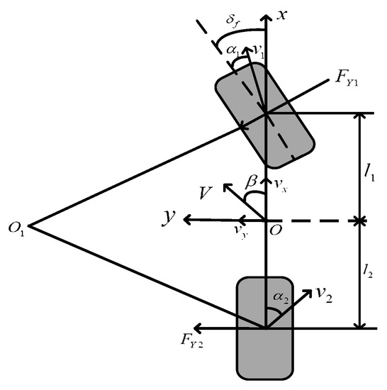 Assuming that the longitudinal velocity of the vehicle on the axis is a constant value, then the lateral motion and yaw dynamics equations of the vehicle are as shown in Equation (14):