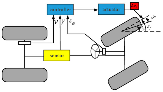 In recent years, with the development of electronic technology, various vehicle active safety control systems have been continuously applied to actual vehicles, which greatly improves the active safety of these vehicles, with these systems including ABS, AFS, direct yaw moment control (DYC) [1,2]. Since each system only affects the performance of a certain vehicle in a specific area, to optimize the vehicle’s dynamic performance, developing the coordinated control of each chassis subsystem will become the focus of future vehicle dynamic control research [3].