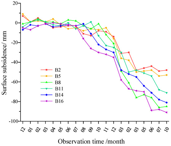 3.2.1. Surface Subsidence Characteristics of Coal Seam Mining