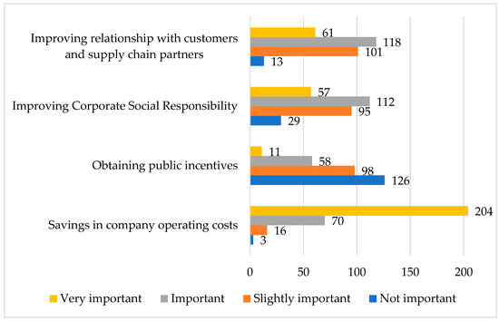 41]. Similar findings have been also identified in the Italian context, where the economic drivers were identified with the highest relevance by companies together with companies’ long-term strategy [