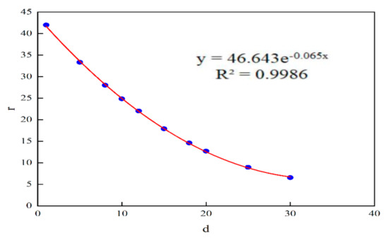 The relation curve between the safety limit value r of the horizontal/vertical ratio and permeability level difference d in the well area.