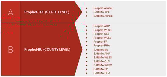 | Prophet | ‘changepoint_prior_scale’: [0.0001, 0.0005, 0.001, 0.005], ‘changepoint_range’: [0.8, 0.85, 0.9, 0.95], ‘seasonality_mode’: [’additive’, ’multiplicative’], ‘seasonality_prior_scale’: [0.01, 0.1, 1.0, 10.0], ‘yearly_seasonality’: [True, False] |
