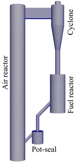 - Lin, J.; Sun, L.; Luo, K.; Kong, D.; Fan, J. Three-dimensional simulation of a gas-fueled chemical looping combustion system with dual circulating fluidized bed reactors. Energy 2022, 246, 123293. [Google Scholar] [CrossRef]