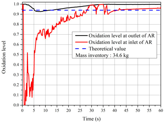 Time evolution of oxidation level. The solid inventory is 34.6 kg.