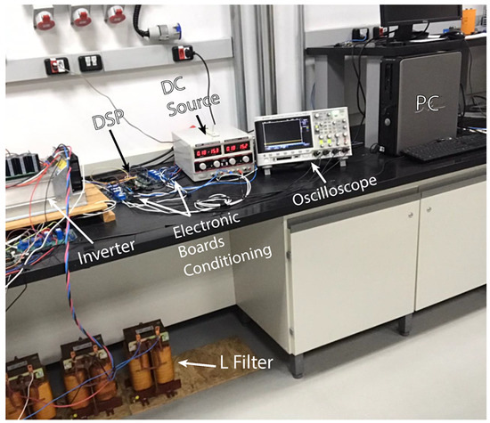 Figure 3 presents the experimental workbench used to evaluate the proposed grid current control using the control robust strategy, which is composed of electronic boards to acquire the voltage (v) and current (i) variables, a digital signal processor (DSP) Texas Instruments model TMS320F28335 to implement the controller proposed here and a back-to-back inverter of the model “Semikron SKS20F (B6CI)2P+E1CIF+B6U 14V12” connected to the grid. The parameters of the system are presented in Table 2.