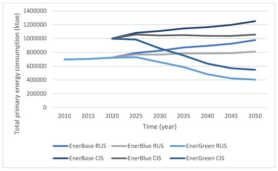 Total primary energy consumption forecast in the CIS countries and Russia, ktoe. Source: based on data from [30].