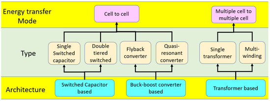 Briefly, the AEC uses the switch array, capacitors, inductors, or transformers to absorb the energy from the cell with the highest voltage and release the energy to the cell with the lowest voltage. Many kinds of AECs are shown in Figure 2, but most are based on the DC/DC converter principle.