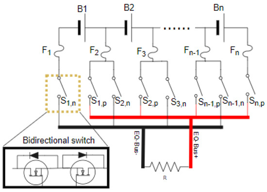 Figure 3 shows the fundamental topology of an AEC with the DC/DC converter working principle, and all switches are the bidirectional switch (BS) which consists of a back-to-back MOSFET string, called BS-MOSFET. Obviously, all switches in Figure 3 need high-speed switching to transfer energy between the string cell and the transformer.