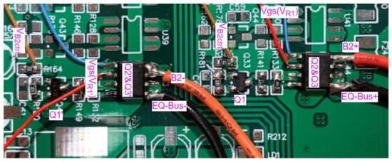 The above experimental results have verified the transient characteristics of the BS-MOSFET circuit design of the highest string cell and the lowest string cell in the battery pack, respectively. Briefly, the time of the ON/OFF transient state is around 80–100 us. Therefore, the following section will demonstrate the A-HEC design to the BMS board and test the balancing current for the actual battery pack.