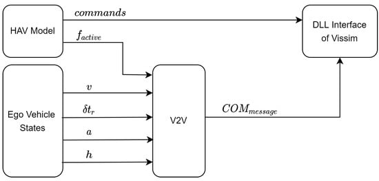 sent to DLL interface. Meanwhile, the V2V block receives state signals from HAV model and Vissim (i.e., current ego car speed
