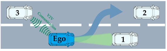 21], an advanced driver assistance system is introduced from Toyota, which has been commercially realized in Japan in 2021. This system has multi-modal sensors covering the complete periphery of 360 degrees. Hence, the sensor model should have the ability to detect the surrounding objects, especially traffic participants upstream and downstream of the adjacent lane. Additionally, the most important parameter is to set the effective range of the sensor detection. Namely, only traffic participants within the detection range are considered. With the development of sensor technology, long-range radar is a range capability up to 150–200 m, presented in [