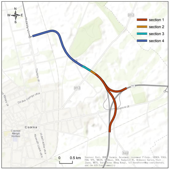 The test scenario is the upstream part of the M86 motorway. This road is close to the town of Csorna in northwestern Hungary (Győr-Moson-Sopron County, West Transdanubia region), connecting Szombathely with Győr, towards Budapest. The M86 is part of the TEN-T network [